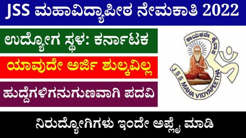 JSS ಮಹಾವಿದ್ಯಾಪೀಠ ನೇಮಕಾತಿ 2022 ಉಪನ್ಯಾಸಕರು/ಸಹಾಯಕ ಪ್ರೊಫೆಸರ್ ಹುದ್ದೆಗಳಿಗೆ ಅರ್ಜಿ ಸಲ್ಲಿಸಿ